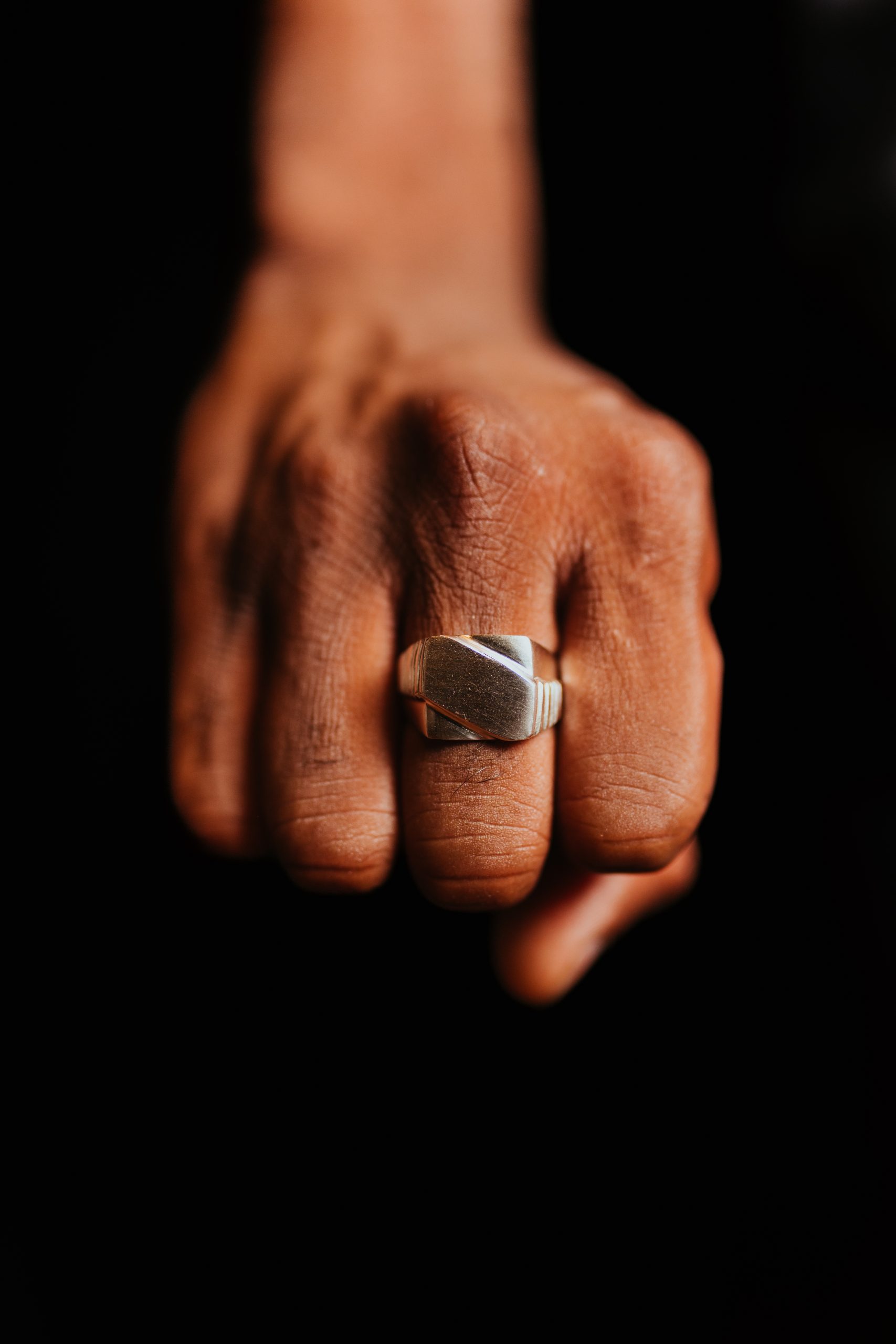 Affirmez votre individualité avec cette chevalière en argent au design original.
