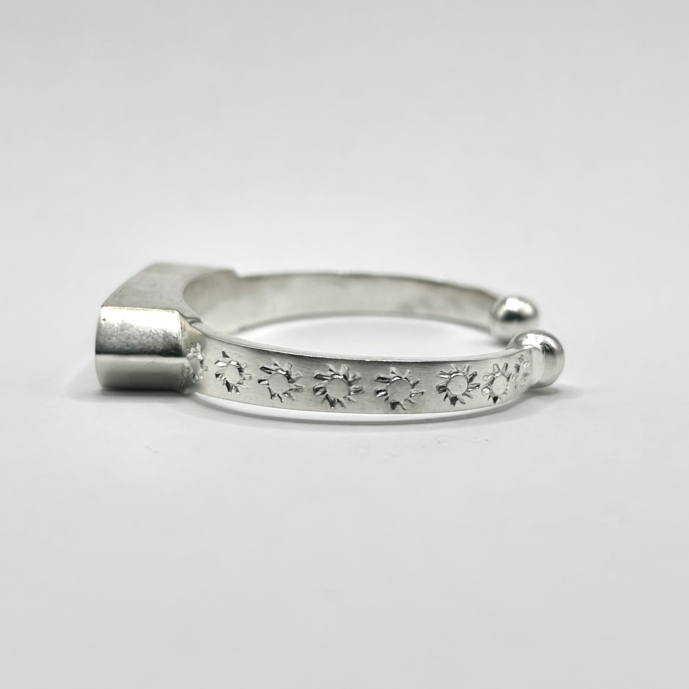 Bracelet touareg en argent, entièrement fait main, avec de belles gravures et une plaque centrale au style authentique. Une pièce élégante et pleine de caractère.